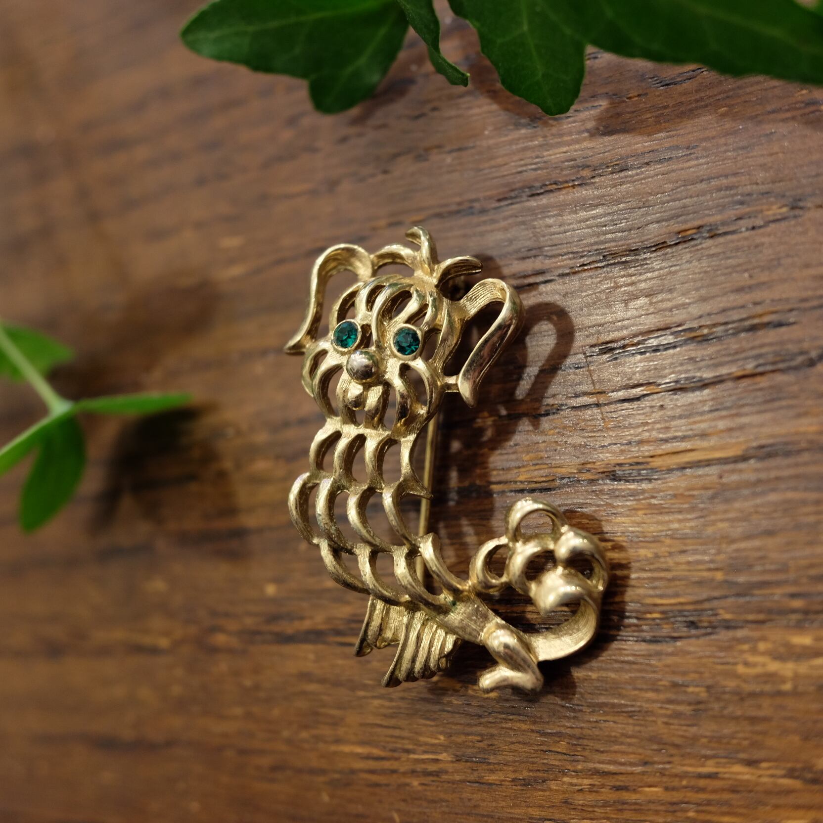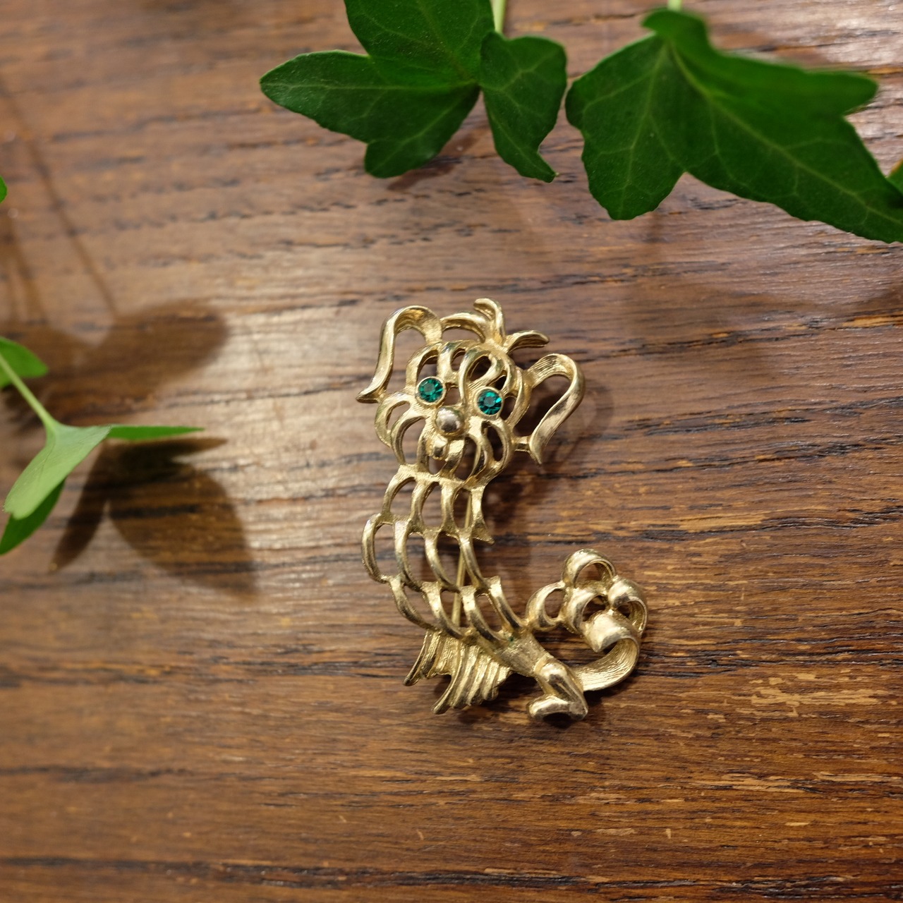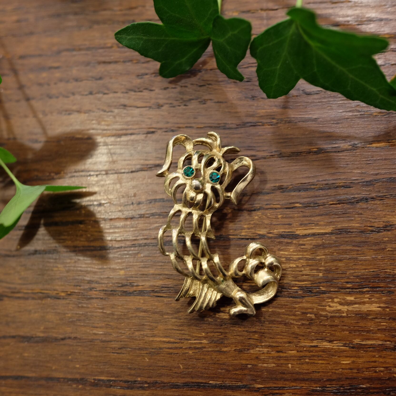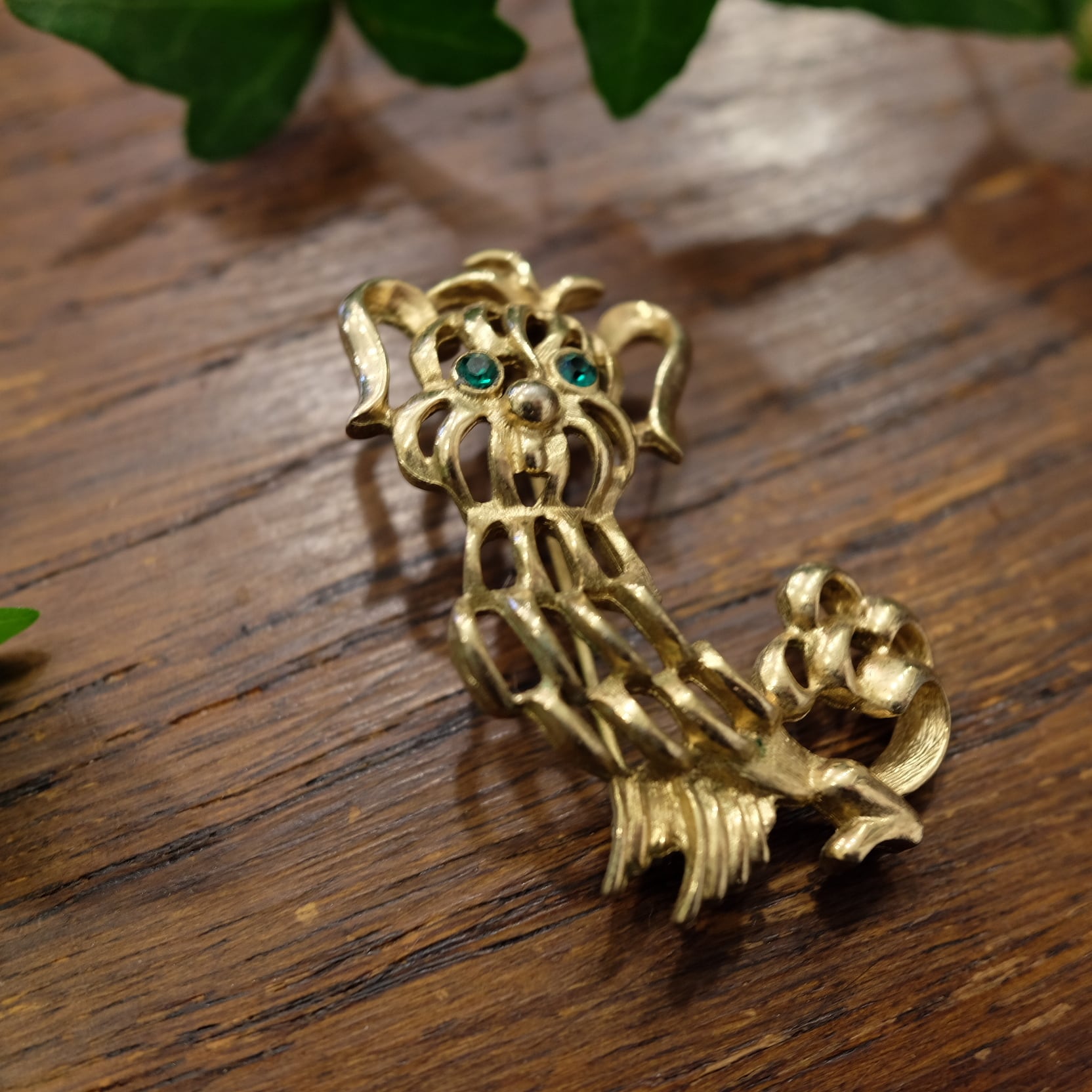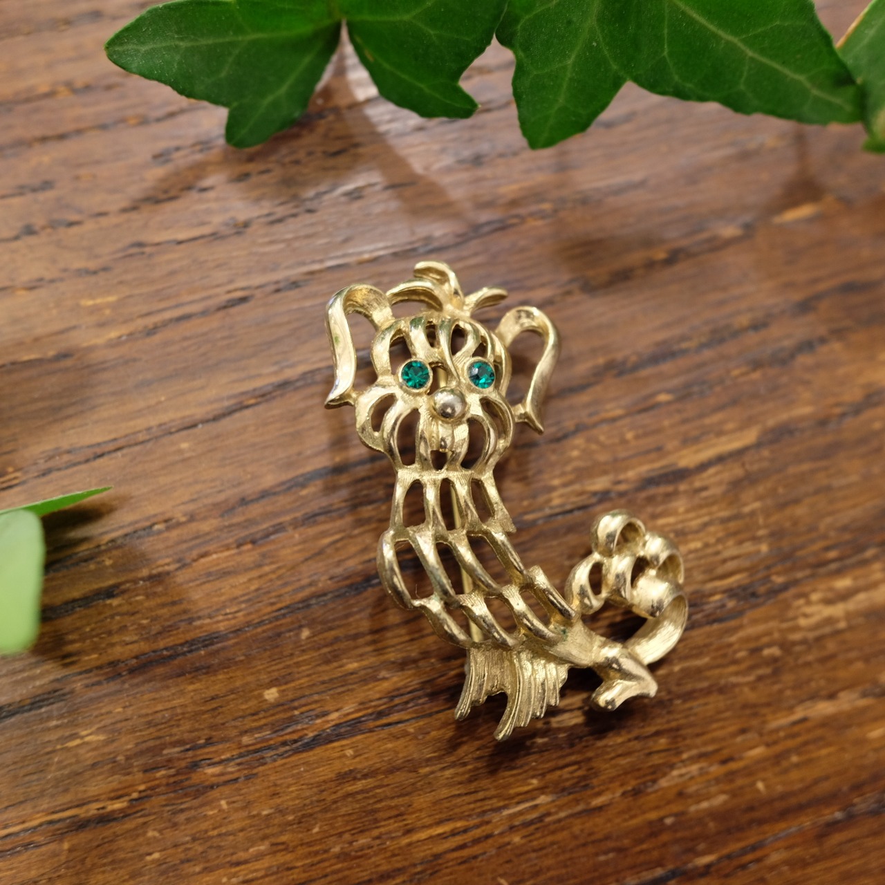 碧色のラインストーンの目が綺麗な(プードル?なのかな?)ワンちゃんモチーフの60〜70年代ヴィンテージブローチのご紹介です。
