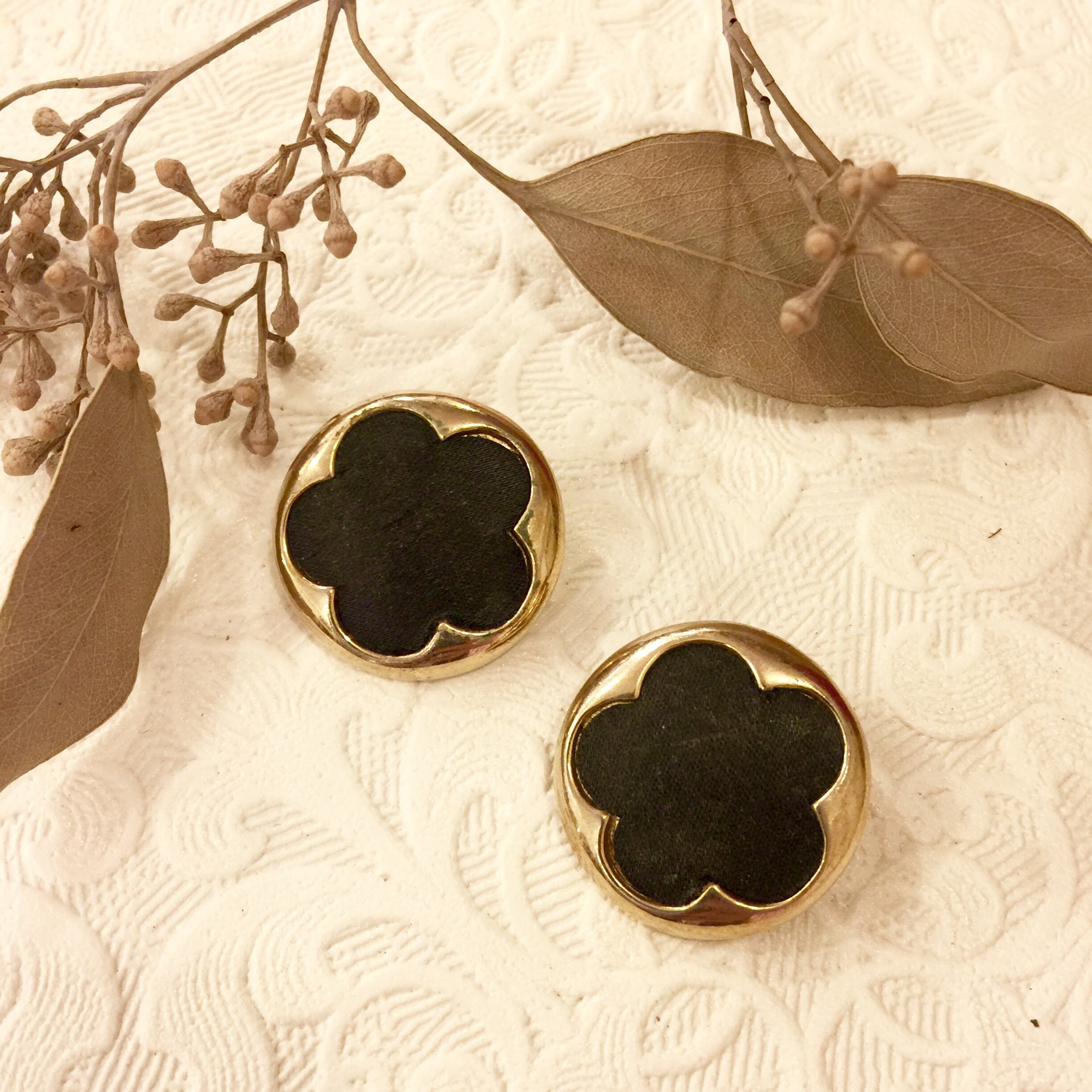 いろんなブランドがモチーフとして使用するシンプルな花が、ゴールドベースにフェイク革であしらわれたヴィンテージイヤリングです。
