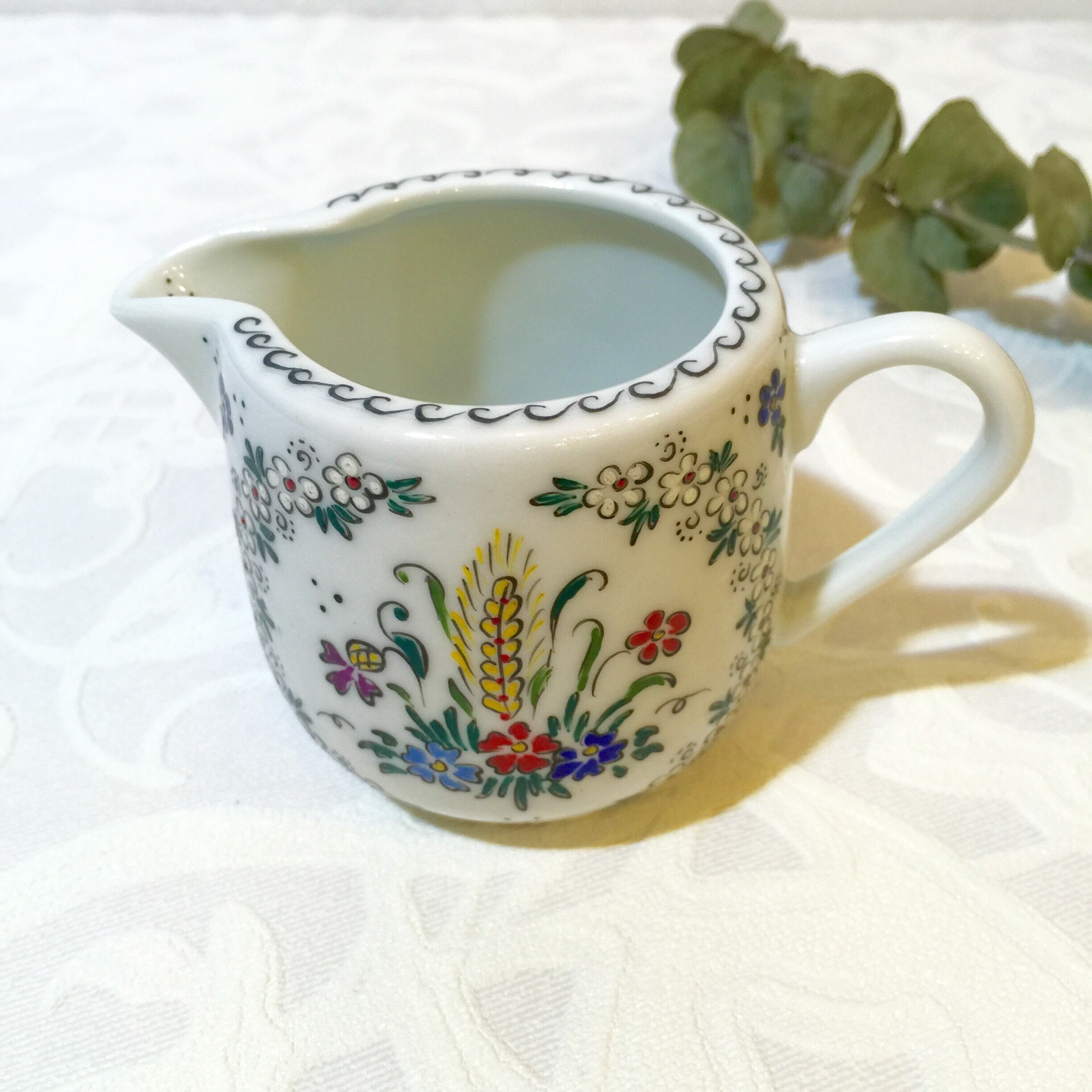 繊細な花がたくさん描かれている、なんとも可憐な1992年製ミルクポットです