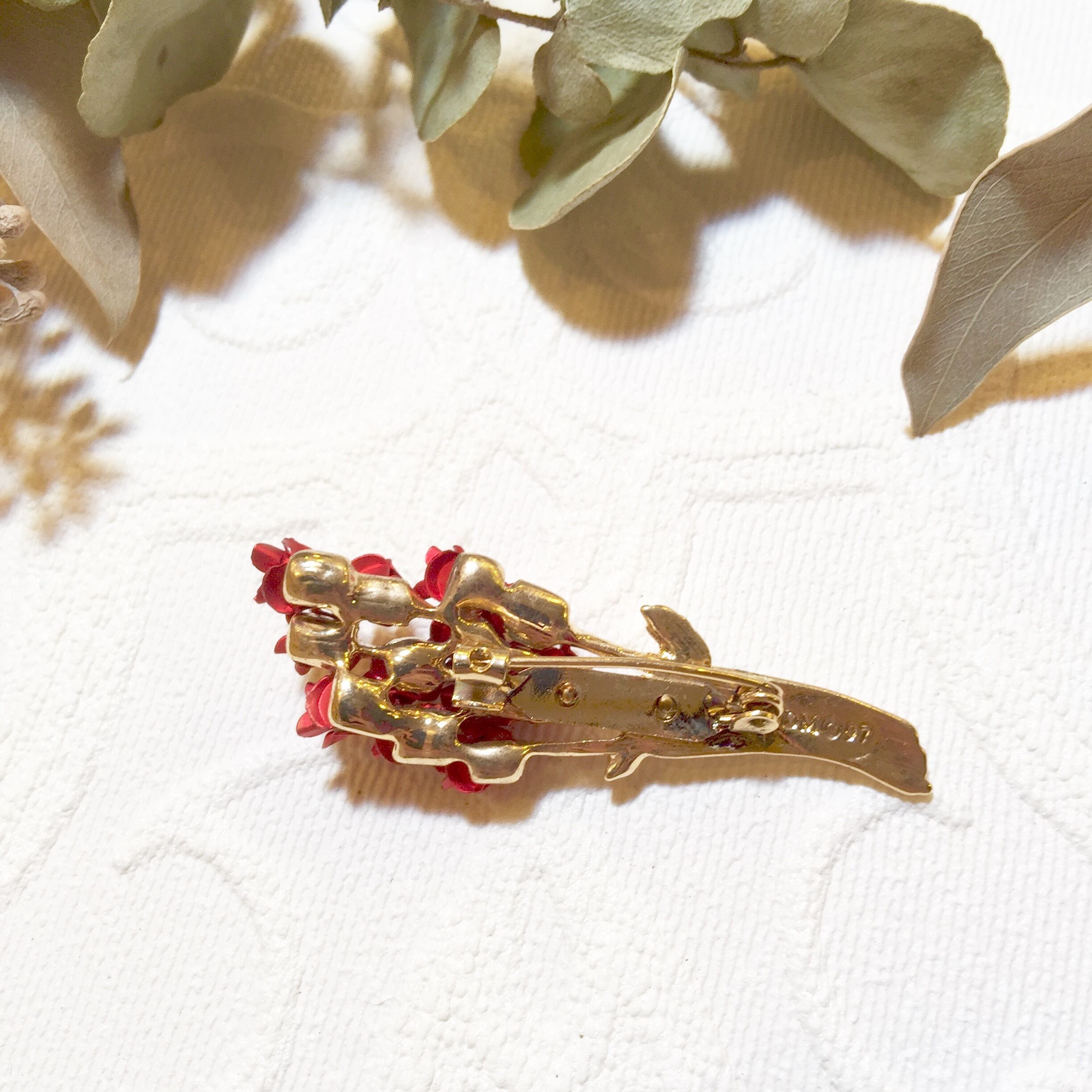90's Vintage Signed "DM©97" Red Enameled 3D Roses Bouque Brooch [BV-41]