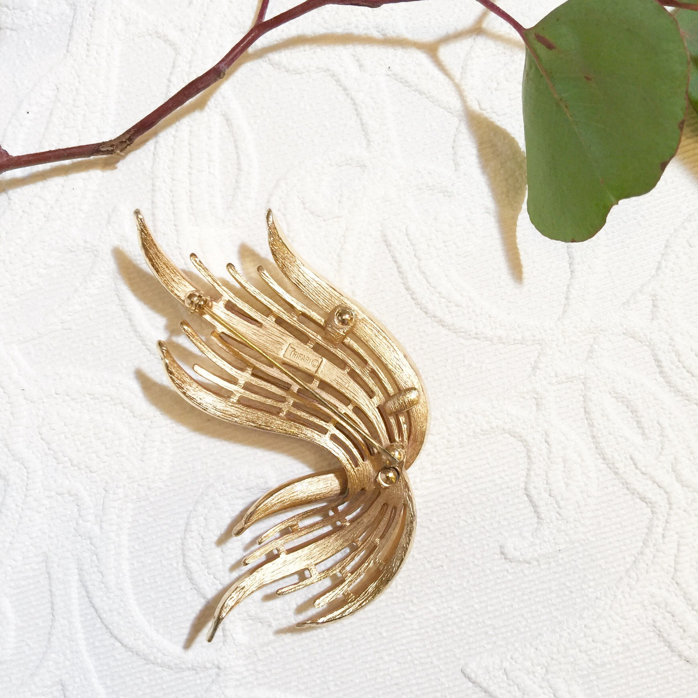50-60's Vintage Signed "Crown Trifari" Goldtone Brooch [BV-53]