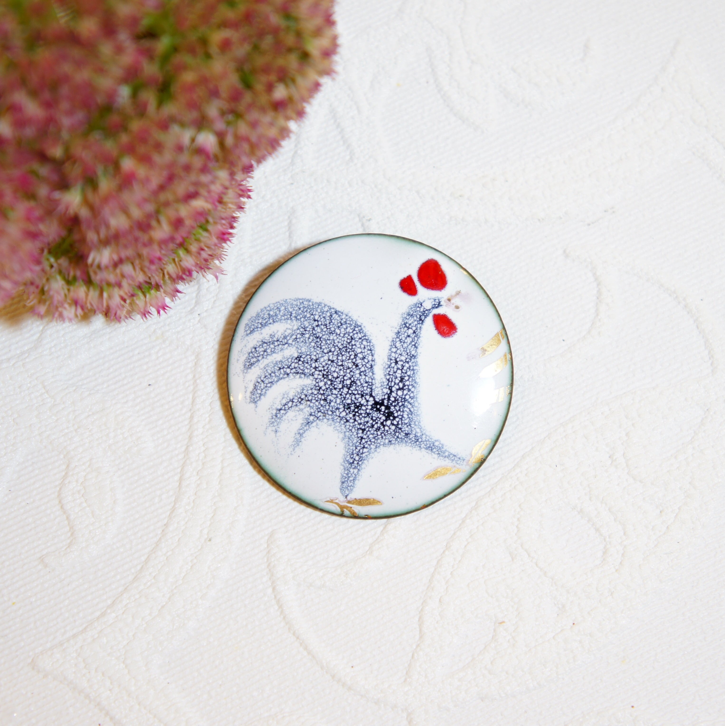 シンプルな丸い形の中に雄鶏が描かれた七宝焼のヴィンテージブローチです。