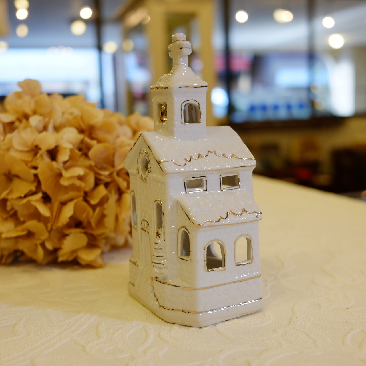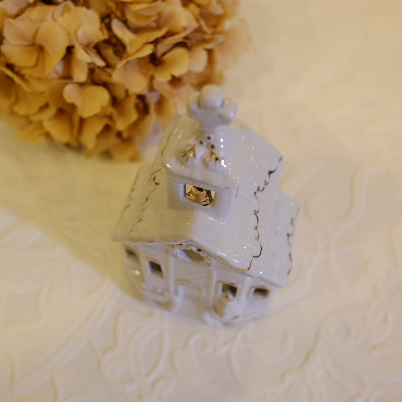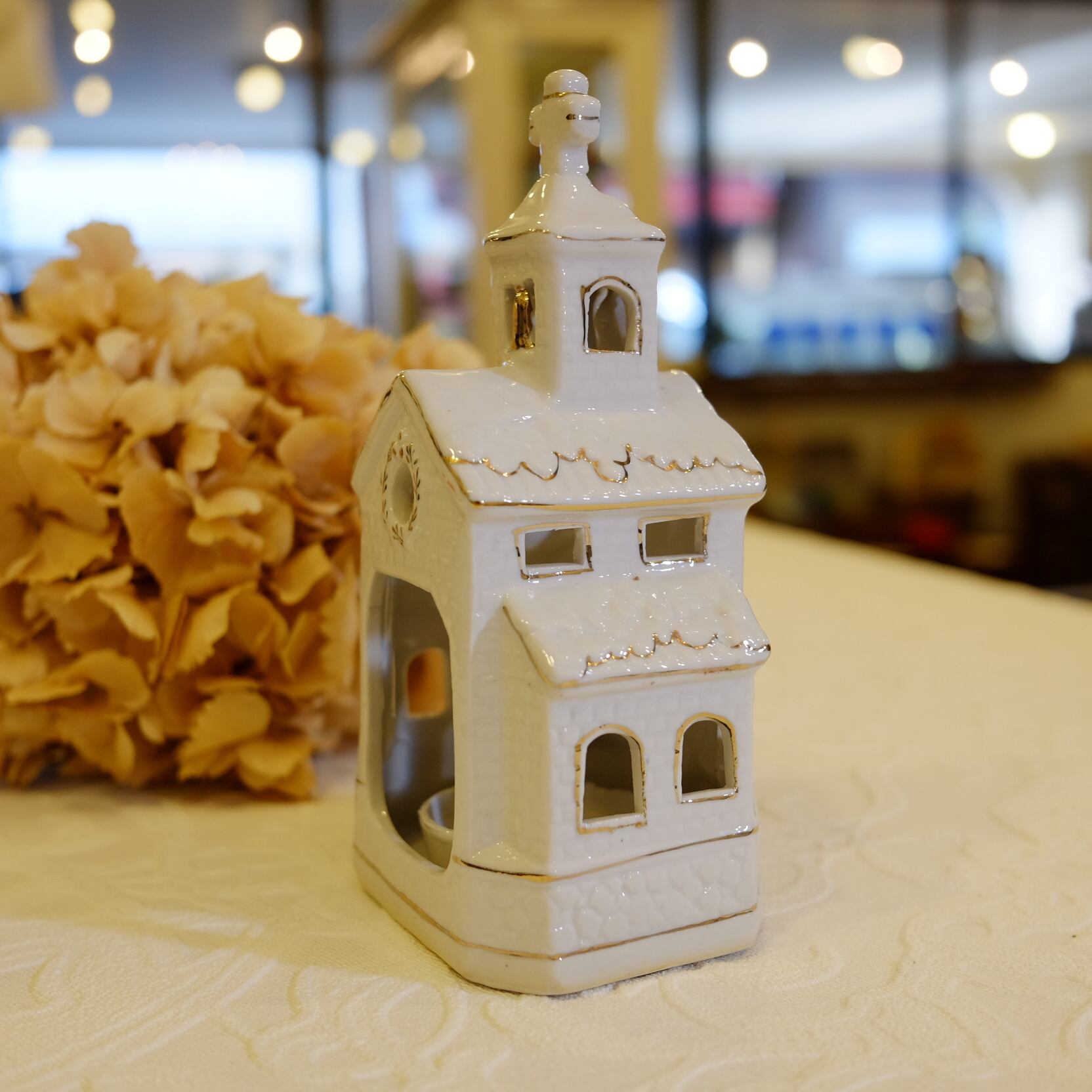 乳白色陶磁器にゴールドで窓をトリミングしてある