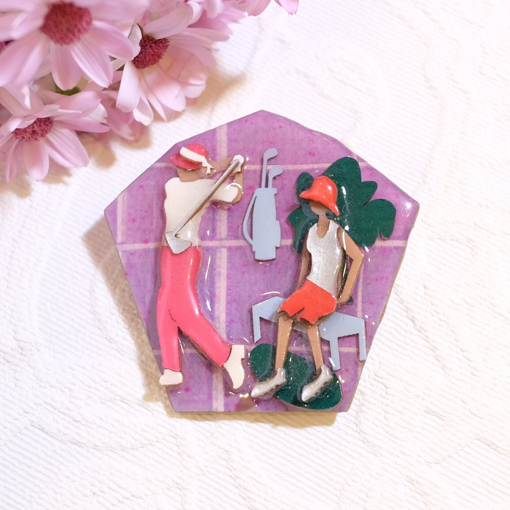 " Lucinda [ルシンダ] " 90's 2人で楽しくゴルフを♪『WOMAN』ブローチ [BV-200]