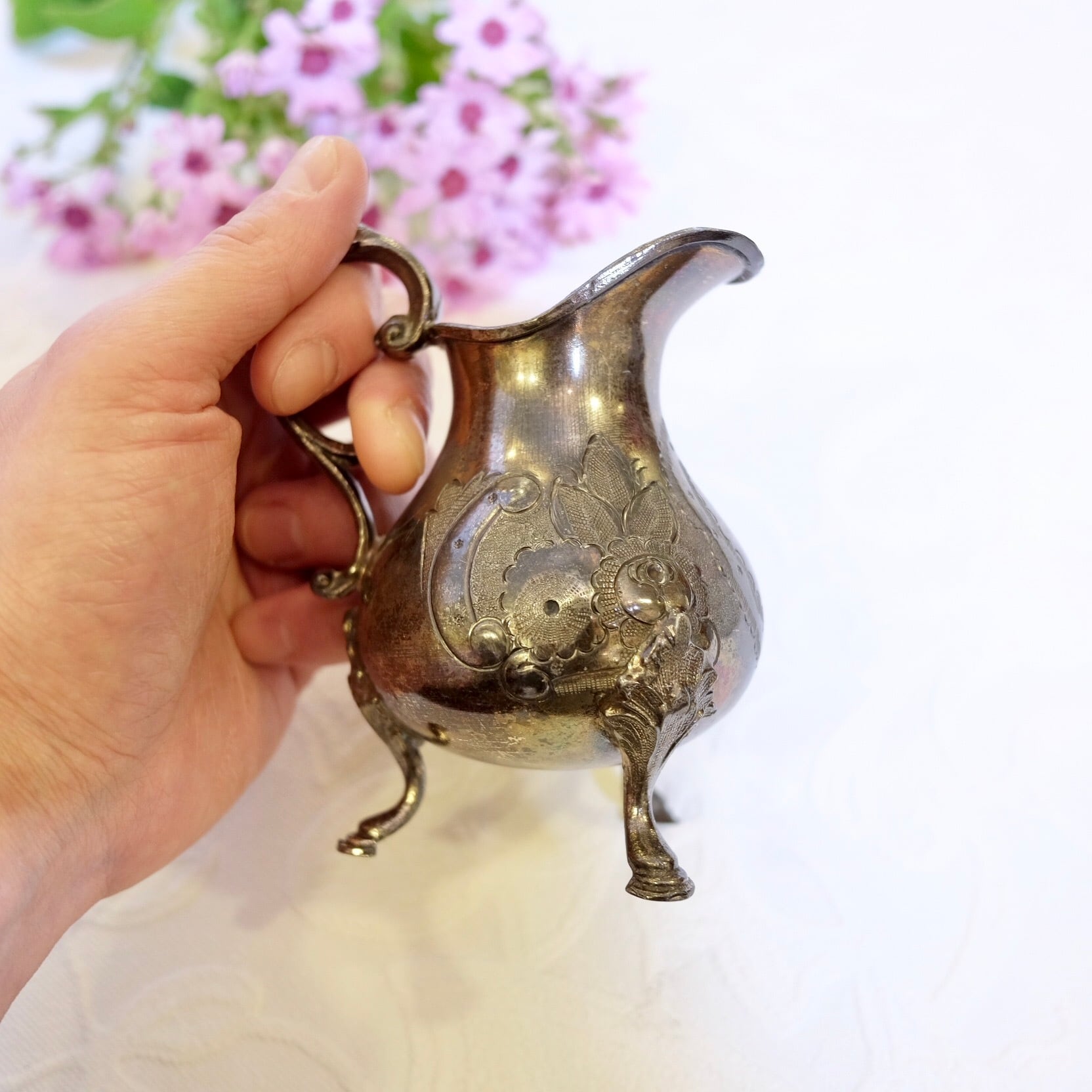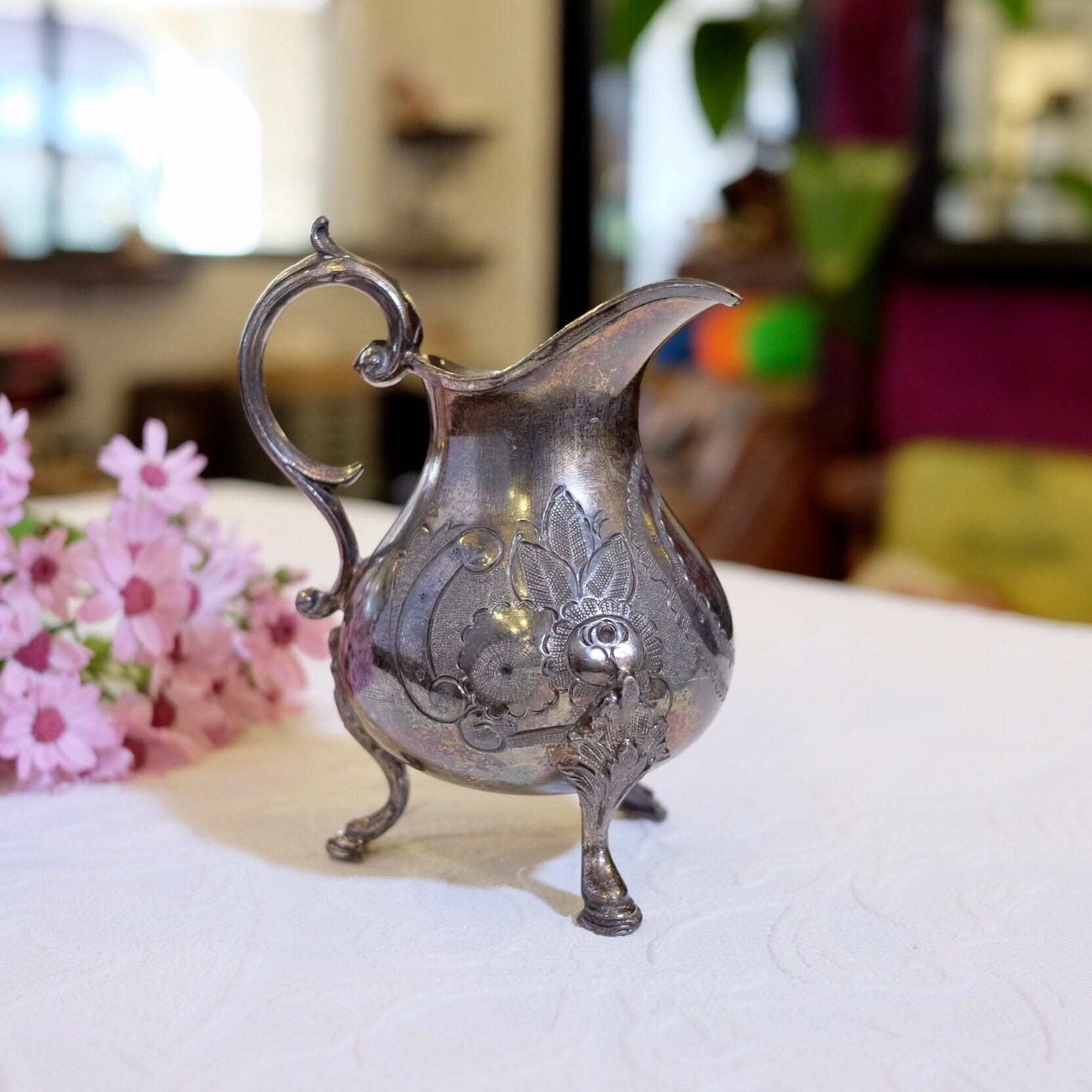 想像が膨らむ純銀製のアンティークミルクポットです。