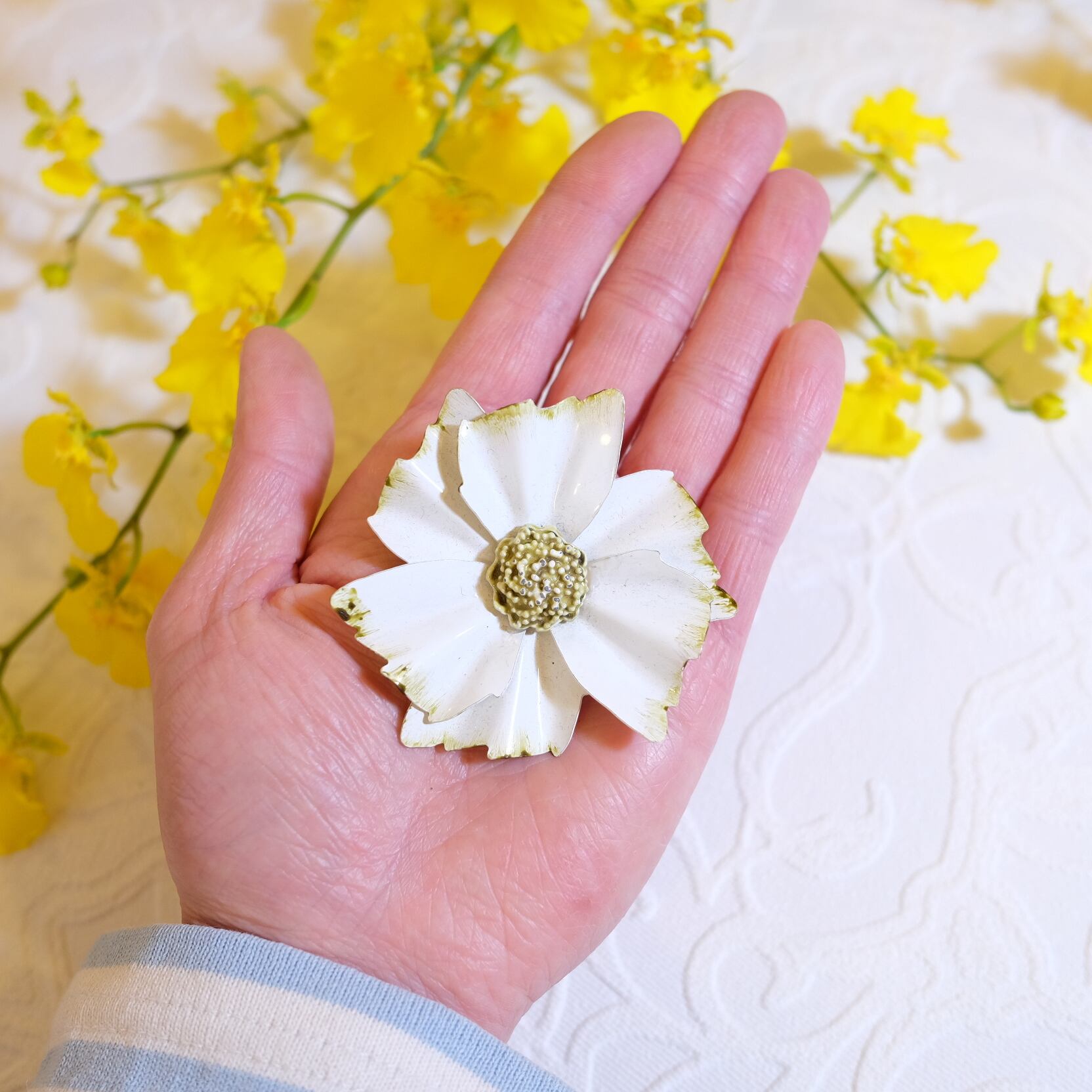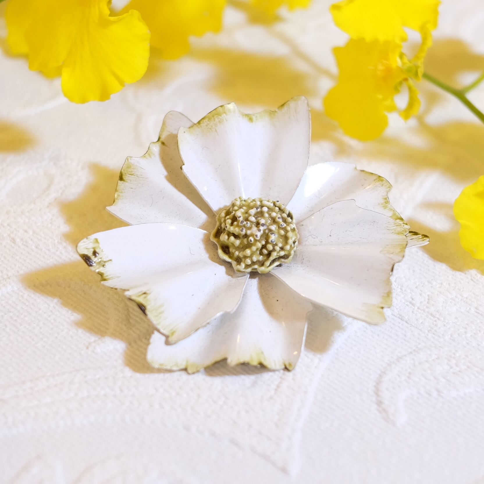 60's 柔らかな白さが素敵な大きな花のヴィンテージブローチ [BV-214]
