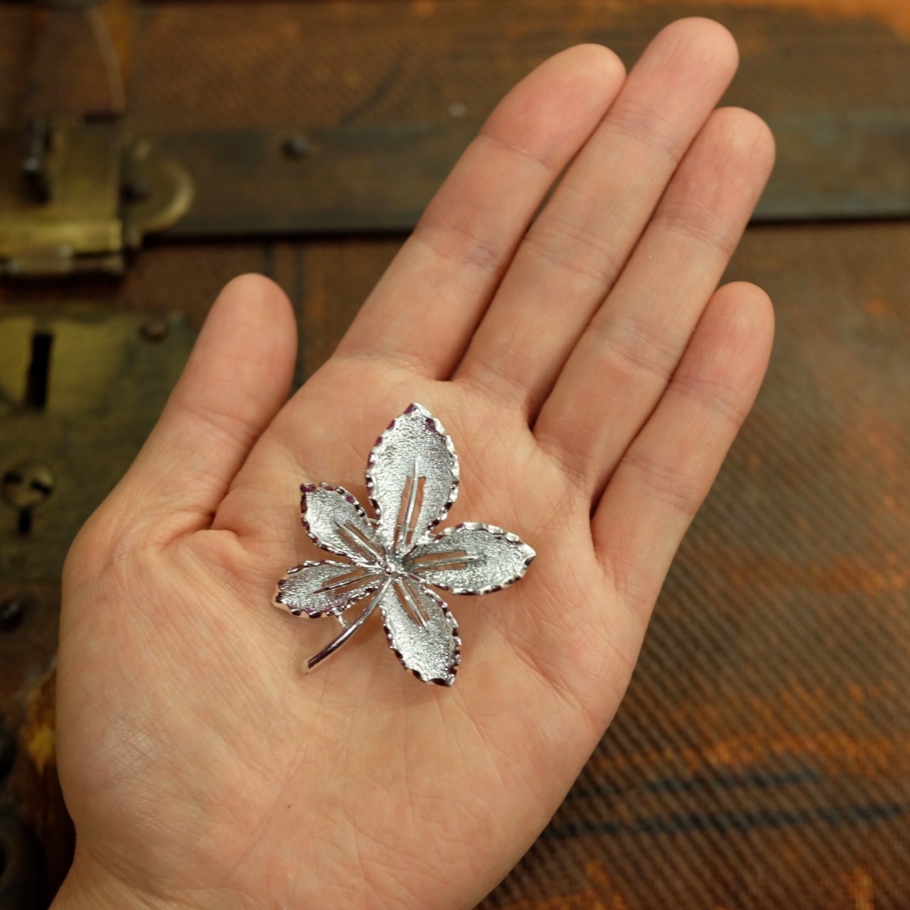 大きすぎず、小さすぎず。。。麻やコットンのブラウスの胸元にちょうど良いサイズのブローチです。