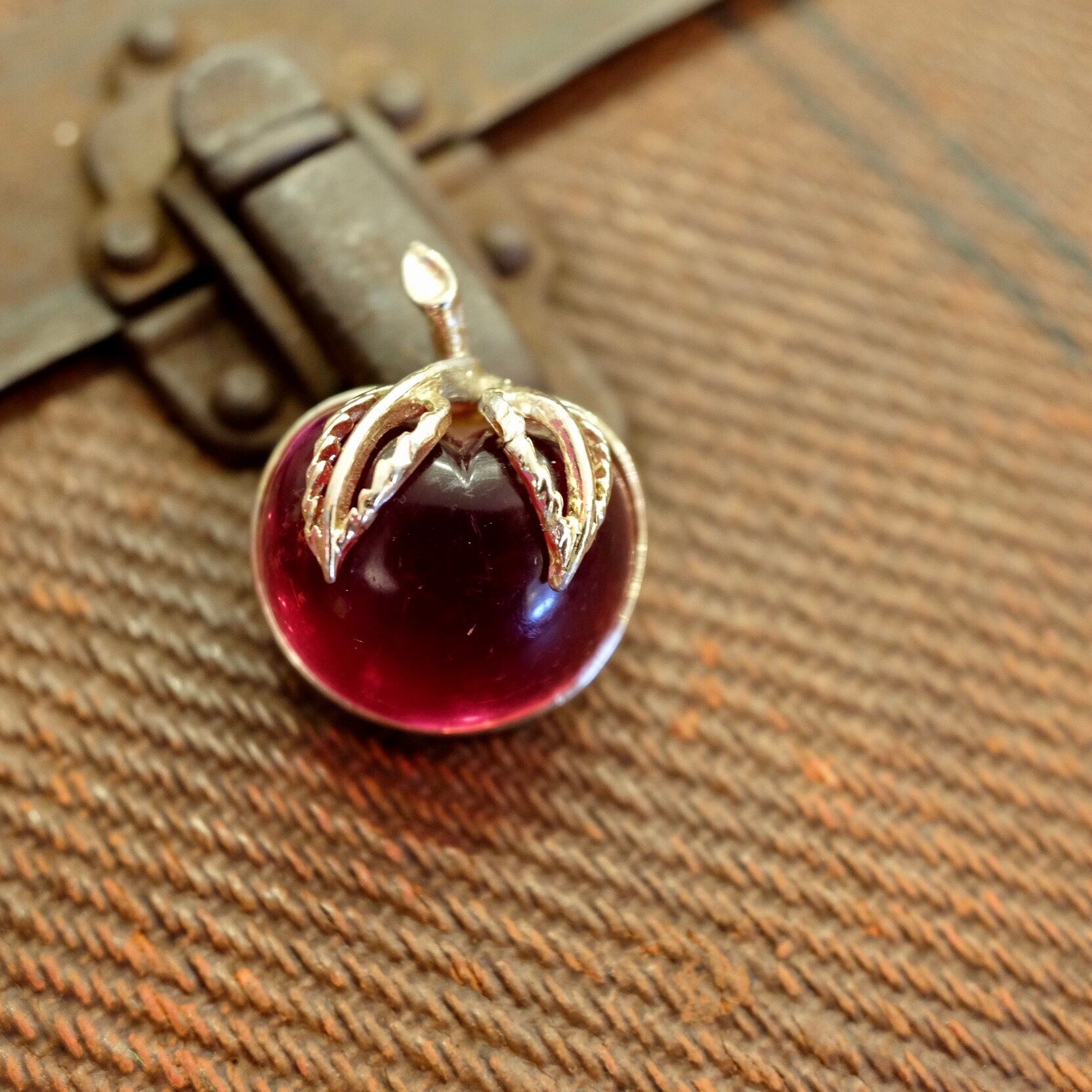 ぷっくりとしたフォルムとピンクがかった透明感の強いバーガンディーカラー美しいブローチのご紹介です。